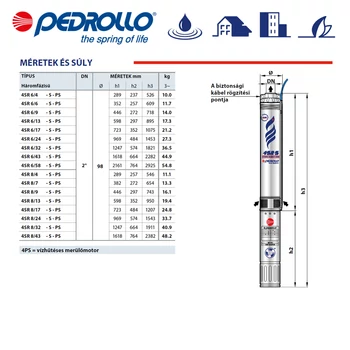 4" Pedrollo 4SR8/24 S - 4PS csőbúvár szivattyú