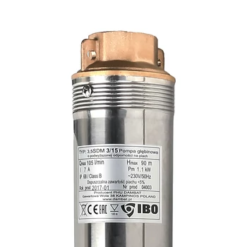3,5" SDM 3/15 | 90m 105l 230V 1,1kW [20m] | IBO 3,5 col Csőkút szivattyú [fúrt kút szivattyú]